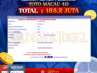 DEWATOGEL JACKPOT TOGEL DI TOTO MACAU 4D Rp 185.200.000,- LUNAS