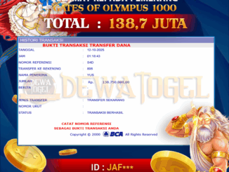 DEWATOGEL JACKPOT SLOT DI GATES OF OLYMPUS 1000 Rp 138.750.000,- LUNAS MEMBER DEWATOGEL MENERIMA PELUNASAN KEMENANGAN JACKPOT SLOT DI GATES OF OLYMPUS 1000 Rp 138.750.000,- […]