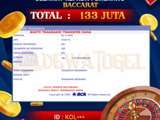 DEWATOGEL JACKPOT LIVE CASINO DI BACCARAT Rp 133.000.000,- LUNAS