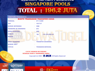 DEWATOGEL JACKPOT TOGEL DI SINGAPORE POOLS Rp 196.200.000,- LUNAS
