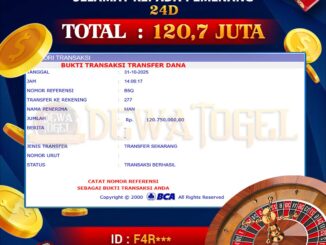 DEWATOGEL JACKPOT LIVE CASINO DI 24D Rp 120.700.000,- LUNAS